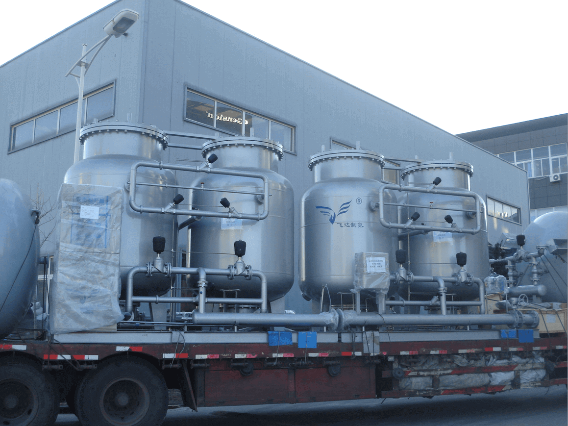 举例说明:纯度为99.9%,产气量为100m3/h的PSA制氮设备,额外耗气量为383m3/h,当实践用气量为50m3/h时,设备的耗气量为:Q耗=383×87%=333m3/h从以上计算结果可调查出:当实践用气量为额外气量的50%时,设备的耗气量为额外气量时的87%。PSA制氮设备在负荷改动的状况下,能耗的改动很不抱负!可是大多数用户的用气工艺要求中,存在用氮顶峰时段和低峰时段或许是间歇性用氮。而在使用过程中的低峰时段或间歇用氮时,产品氮气纯度上升,能耗下降不抱负,甚至在某些特定的用气工艺下,氮气纯度的上升反而会不利于正常出产,这样就直接导致动力糟蹋和出产质量下降!